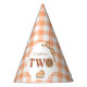 Make your baby's 2nd birthday party unforgettable with this adorable "Cutie Pie" pumpkin themed party hat. Features a peach orange gingham plaid color palette. It’s time for a sweet second birthday celebration! Perfect for an autumn, pumpkin, or Thanksgiving theme birthday. You can personalize this design by clicking on "Personalize this template" or if you wish to change the font, colors or arrange the design elements in a different way you can click on "Edit using Design Tool".