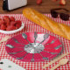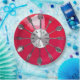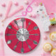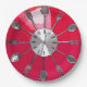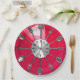 Zeit zum Essen! Ein rotes und rosa Uhrengesicht aus Löffeln und Gabel. Wie toll ist das für einen phantastischen Teller! Sehen Sie, es ist das blaue Schwesterbild 'Cutlery O'clock'.