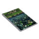 Eine gespaltene Unterwasserszene mit einem grünen Tal oben und den kalten Tiefen eines felsigen Bergflusses unten. Die Sonnenstrahlen tanzen durch das Wasser und die Ufer der silbernen Fische schwimmen zwischen den Steinen und Unkraut des Flussbettes.