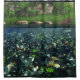 Eine Spalteunterwasserszene mit einem grünen Tal oben und die kalten Tiefen von einem felsiger Gebirgsfluß unten. Sun-Strahlen tanzen durch das Wasser und Massen der silbernen Fische schwimmen unter den Steinen und den Unkräutern des Flussbetts.