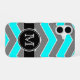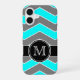 Cyan Blue, Grau, Schwarz Zickzack, Mit Monogramm iPhone 16 Hülle