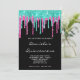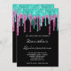 Cyan Hot Pink Glitzer Tropfen Black Quinceañera Einladung