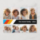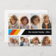 Vordere - 8 Fotoplatte in einem einfachen Raster mit weißem Rand. Ein unterhaltsames Retro-Stripmuster mit Rot, Gold und Blau auf schwarzem Hintergrund und ein schlichter Schriftart machen ein modernes, minimales Design, das an Freunde geschickt werden kann. Zurück - Standard-Postkartendesign. Wenn Sie es leer gewollt haben, gehen Sie in den erweiterten Designbereich und löschen Sie etwas auf den hinteren Ebenen. Sie können auch Spaß haben und die Farben der Streifen und Schriftart ändern.