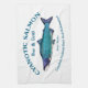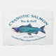 Ein blauer Sockeye Lachs mit Text, der "Cyanotic Lachs Bar & Grill Kenai, Alaska" und "Bekämpfen Sie die Erholung und Entspannung der Fischerei. Die Lachsfischerei ist sehr beliebt und in Alaska zu beliebt. Stellen Sie sich hundert Angler vor, ungefähr Schulter zu Schulter, die beide Ufer eines Baches belästigen und versuchen, in der Hoffnung, einen großen Lachs zu landen, die Überquerung von Linien mit allen anderen zu vermeiden. Das ist der Kampf gegen das Angeln. Nach einem Tag davon nehmen Sie etwas R&R am mythischen Cyanotischen Lachs in Kenai. Die Angelgeschichten haben dort erzählt...ein bisschen wahr.