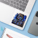 "Step into the digital afterlife with the Cyber Blue Phantom. This mesmerizing design features a central hooded skull illuminated by an electric blue neon glow, surrounded by a legion of ghostly spectral skulls. The intricate silver metallic patterns and glowing blue eyes create a futuristic, high-tech aesthetic perfect for modern rebels. Stand out in the dark with this masterpiece from the Neon Rebels series