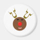 Dieser lustige Weihnachtsmagnet zeichnet sich durch einen lustigen Cartoon eines Rentiers aus. Er hat schattige schwarze Augen und eine riesige, leuchtend rote Nase. Die Geweihten zeigen nach oben und sehen futuristisch aus und machen diesen Rentier zu einem Cyber-Rentier. Er ist aber immer noch niedlich und freundlich.