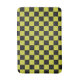 Yellow and black checkerboard pattern with alternating squares. The bold contrast creates a striking, geometric visual effect.