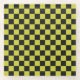 Yellow and black checkerboard pattern with alternating squares. The bold contrast creates a striking, geometric visual effect.