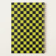 Yellow and black checkerboard pattern with alternating squares. The bold contrast creates a striking, geometric visual effect.