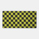 Yellow and black checkerboard pattern with alternating squares. The bold contrast creates a striking, geometric visual effect.