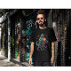 Cyber Neon Skeleton Riding Robo Dino - Halloween T-Shirt