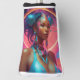 Dieses Bild ist ein futuristisches und lebendiges digitales Portrait einer Frau, das Elemente der Technik und der traditionellen Regalität verbindet. Die Frau ist mit aufwändigen, kybernetischen Accessoires geschmückt, darunter ein metallisches Kopfteil und Ohrringe, die ein digitales, stromlinienförmiges Design aufweisen. Ihr Haar ist in einem raffinierten, edlen Ober-Gewand gestylt, wobei Teile aus glänzendem, metallischem Material zu sein scheinen. Der Hintergrund weist ein neonbeleuchtetes, kreisförmiges Muster auf, das ihr Gesicht umrahmt und die futuristische Ästhetik verstärkt. Ihr Ausdruck ist ruhig und selbstbewusst, und sie trägt ein schlankes, formschönes Kleidungsstück, das das High-Tech-Thema ergänzt.