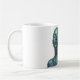 Three futuristic metallic female androids in green, blue, and chrome, aligned side by side with closed eyes on a white mug.