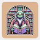 Cybernetic Turtle Librarian - Pixel Wisdom Keeper Quadratischer Aufkleber