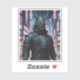 Dieses intensive Bild zeigt einen bedrohlichen Dämon Samurai, der mit einem futuristischen, dunklen Outfit und einer Maske mit leuchtenden roten Augen und Hörnern geschmückt ist. Set in einer neonbeleuchteten, urbanen Umgebung, inspiriert von Cyberpunk-Ästhetik, steht der Charakter inmitten zahlreicher beleuchteter Schilder und Symbole, was auf ein lebhaftes, hochtechnisiertes Stadtbild hindeutet.