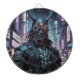 Dieses intensive Bild zeigt einen bedrohlichen Dämon Samurai, der mit einem futuristischen, dunklen Outfit und einer Maske mit leuchtenden roten Augen und Hörnern geschmückt ist. Set in einer neonbeleuchteten, urbanen Umgebung, inspiriert von Cyberpunk-Ästhetik, steht der Charakter inmitten zahlreicher beleuchteter Schilder und Symbole, was auf ein lebhaftes, hochtechnisiertes Stadtbild hindeutet.
