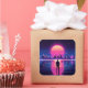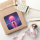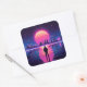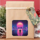 Melancholischer Cyberpunk-Mann starrt auf die untergehende Retrowelle Sonne.