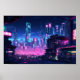 Futuristische sci fi Cyberpunk Stadt Tokio Japan mit farbenfrohen Neonlicht und Nachthimmel, die Dachterrasse Nachtblick.