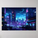 Futuristische sci fi Cyberpunk Stadt Tokio Japan mit farbenfrohen Neonlicht und Nachthimmel, die Dachterrasse Nachtblick.