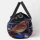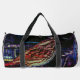 Cyberpunk Sparrow in Neon Cityscape Duffle Bag