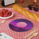 Cyberpunk-Synthwave-Scifi-Rosa schwarz Pappteller