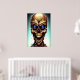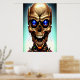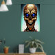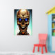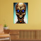 Golden gefärbter Zyborgskull mit tiefblauen Augen. Das ist eine künstlerische KI.
