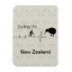 Radfahrer, die einen Herzschlag gegen einen Kiwi-Vogel mit Fisch im Hintergrund fahren