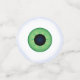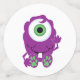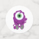 Glückliches lila Cyclops-Monster auf der einen Seite, Augapfel auf der anderen Seite. Eine lustige Tischdekoration für das Halloween-Party oder die Geburtstagsfeier zum Thema Monster.