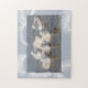 Ein bezauberndes Foto von sechs jungen Zygnets auf einem See mit einem Rand von Schwanenfedern auf einem blass blauen Hintergrund.