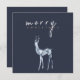 Eine moderne, minimalistisch-neutrale Schieferblau-Weihnachtskarte, die mit handgemalten Rentieren aus Aquarellkristall und moderner Typografie entworfen wurde.