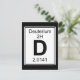 Das Element D - Deuterium aus dem Periodensystem. Obwohl es sich technisch um eine Variante von Wasserstoff handelt, hat es seinen eigenen Buchstaben und ist somit Teil des eleMental Table geworden! Gut als Single-Element zu verwenden, aber noch besser, mehrere Produkte zu kombinieren, um Wörter zu erstellen. Sei es mit Shirts als Team oder mit Aufklebern/dekorativen Gegenständen auf Zuhause. Die Hintergrundfarbe kann geändert werden. Die meisten Produkte ermöglichen es Ihnen auch, das weiße Ausfüllen des Designs zu aktivieren/auszuschalten, sodass Sie z.B. ein Foto z.B. den Geburtstagsjungen einsetzen können. Sei kreativ! Unsere Designs sind dazu gedacht, mit dem "basteln" zu werden und sind als solche mit dem Ziel gebaut, kundenspezifisch zu gestalten.
