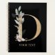 Letter D monogramm floral. Letter D in goldbrauner Textur mit grünen Aquarellfarben Blätter, Blume Blüten und Goldstaub. Personalisiert mit Namen in passendem Schriftart.