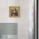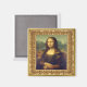 Miniaturkunstquadratischer Magnet, mit Leonardo Da Vincis berühmtem Ölgemälde Mona Lisa, Set in einem verzierten Goldrahmen. Passen Sie auf, um Ihren eigenen Text oder verlassen, wie es ist, für eine Miniaturversion dieses berühmten Gemäldes bereit, Ihre Metalloberfläche zu dekorieren.