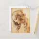 Da Vinci Frauenkopf Postkarte. Tintenzeichnung auf Papier aus dem Jahre 1473. Eine von Leonardo da Vincis bewundernswertesten Gesten, die Leiterin einer Frau, zeigt eine schöne junge Dame, die ihr Gesicht zum Betrachter senkt, mit ihren Augen, halb offen in Kontemplation, ihr lang fließendes Haar hängt über ihr Gesicht und ihre Schultern. Sie trägt ein hübsches Diadem und kleine Bögen im Haar. Ein schönes Geschenk für Fans von Leonardo da Vinci Skizzen, High Renaissance Kunst und berühmte Portraits.