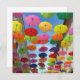 Ein Dach aus bunten Regenschirmen unter dem klaren Himmel