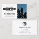 Diese Dachdecker, Dachdecker-Zuhause repariert Visitenkarte verfügt über einen Arbeiter auf einem Dach. Ideal für Dach, Dachdecker, Zuhause-Reparatur, Zuhause-Umbau, Bauwesen, Bauunternehmer, Dienstleistungsthemen.