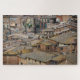Schwieriges Puzzle, das ein fast abstraktes Foto der orange Lehmfliesendächer in der mittelalterlichen Architektur gesehen von oben genanntem von Torre Del Mangia am Piazza Del Campo im alten historischen Stadtzentrum von Siena, Stadt in Toskana, Italien zeigt.