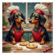 Adorable Dachshunds baking Christmas cookies in a cozy holiday kitchen. This festive painting captures the warmth and joy of the season — perfect for dog lovers and holiday décor enthusiasts.
