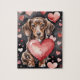 Dachshund Dog Pet Portrait Watercolor Valentine Puzzle