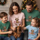 "This irresistibly cute illustration features a portrait of a tiny Dachshund dog with its characteristic long body, short legs, and large, expressive eyes. The dog is given a whimsical holiday touch with reindeer antlers adorned with small colorful ornaments. Two beautifully wrapped Christmas presents with red ribbons sit prominently on either side. This high-quality graphic is ideal for personalized holiday gifts for Dachshund owners, Christmas cards, ornaments, apparel, or any product celebrating this charming and beloved 'wiener dog' breed."