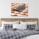 Dieser phantastische Leinwand zeigt ein Foto einer wilden Taube, die auf einem Dach sitzt. Die Taube hat einen wunderschönen, mit Motiven gepolsterten Absturz und sieht sehr zufrieden auf ihrer Dachterrasse aus.
