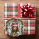 Eine Weihnachtsschmuckkarte mit Dackel-Wursthund in Weihnachtsmannmütze- und Ferienlichtern stand vor einer weihnachtlich dekorierten Haustür. Braun und braun Dackel-Hund-Dekorationskarten, eine einzigartige Alternative zu einer traditionellen Ricaso-Karte - fügen Sie Ihren eigenen Text hinzu