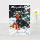 Mit dieser festlichen Dachsund Weihnachtskarte mit einer hübschen Schwarz-Weiß-Dackel senden Sie fröhliche Urlaubswünsche. Die Dackel liegt inmitten von Weihnachtsschmuck und Ästen mit Weihnachtsgeschenk, mit schneebedeckten Bäumen im Hintergrund einer Winterszene. Schneeflocken fallen sanft gegen einen Sternenhimmel, was dem gemütlichen Ambiente eine Touch Magie verleiht. Die Weihnachtskarte der Dackel ist der ideale Begleiter für die Liebsten und Dackeln während der Urlaubssaison. Die Weihnachtskarte ist die perfekte Art, Wärme und Fröhlichkeit zu teilen.