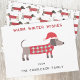 Niedliche und bezaubernde Dackel Wurst oder Dackel Hund in einem festlich rot-weiß gestrickten Pullover. Ändern Sie die Namen und den Gruß zu personalisieren. Originelle Kunst von Nic Squirrell.
