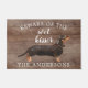 Funny Vorsicht vor dem nassen Kisser" Black & Tan Dackel Dog Türmatte Set auf einem rustikalen Imitat Hintergrund. Besuchen Sie unseren Shop, um eine große Auswahl an Hundebrotten zu sehen