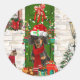 Dackel Hund sitzend draußen geschmückte Zuhause mit Weihnachtskranz, Weihnachtsbaum ist eine perfekte Weihnachtsgeschenk Idee für Hundefreunde.