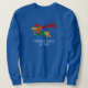 Digital gezeichnet Weihnachts-Dackel mit rotem und grünem Pullover und Mütze.