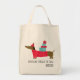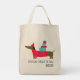 Dackel durch die Schnee Weihnachten Hund Spaß-Lebensmittelgeschäft Große Tragetaschen bietet einen niedlichen whimsical Dackel Hund mit Geschenken mit dem Text "Dackel durch den Schnee" in der modernen Drehbuch. Von Evco Holidays entworfen www.zazzle.com/store/evcoholidays