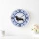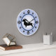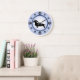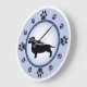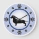 Dackeln- und Hundebesitzer werden dieses moderne Design mit einer Silhouette der Dackel und Pfotendrucken, die die Zahlen auf der Uhr darstellen, mit einem blauen Hintergrund und einem dunkelblauen Ring genießen.