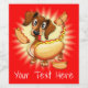 Niedliche Dackel Hund Cartoon Charakter sieht ein wenig verwirrt und erstaunt, mit Zunge hängen, und mit großen überraschten Augen, weil er erkennt, dass er ein...Hot Dog Sausage! Vector Clip Art Illustration abgeschieden auf weiß. Copyright BluedarkArt.